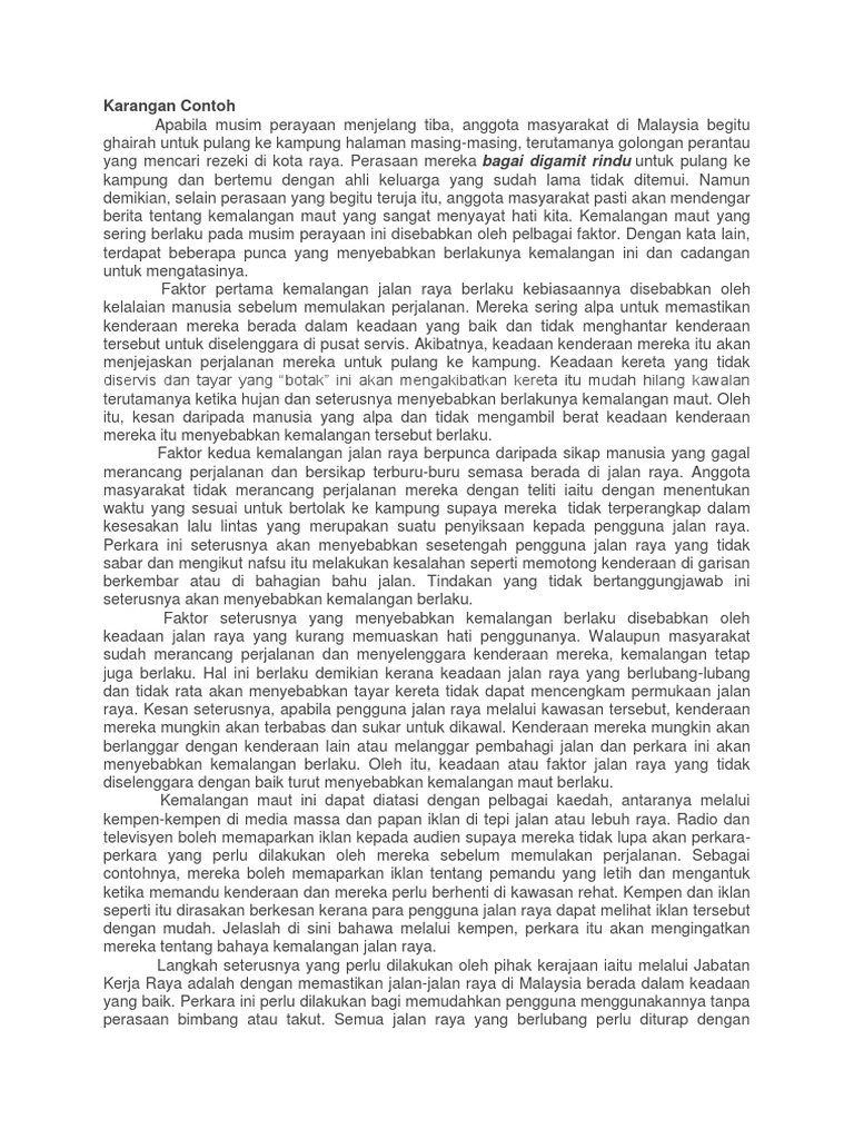 Related : Karangan Faktor Kemalangan Jalan Raya / Langkah mengatasi masalah kemalangan jalan raya..